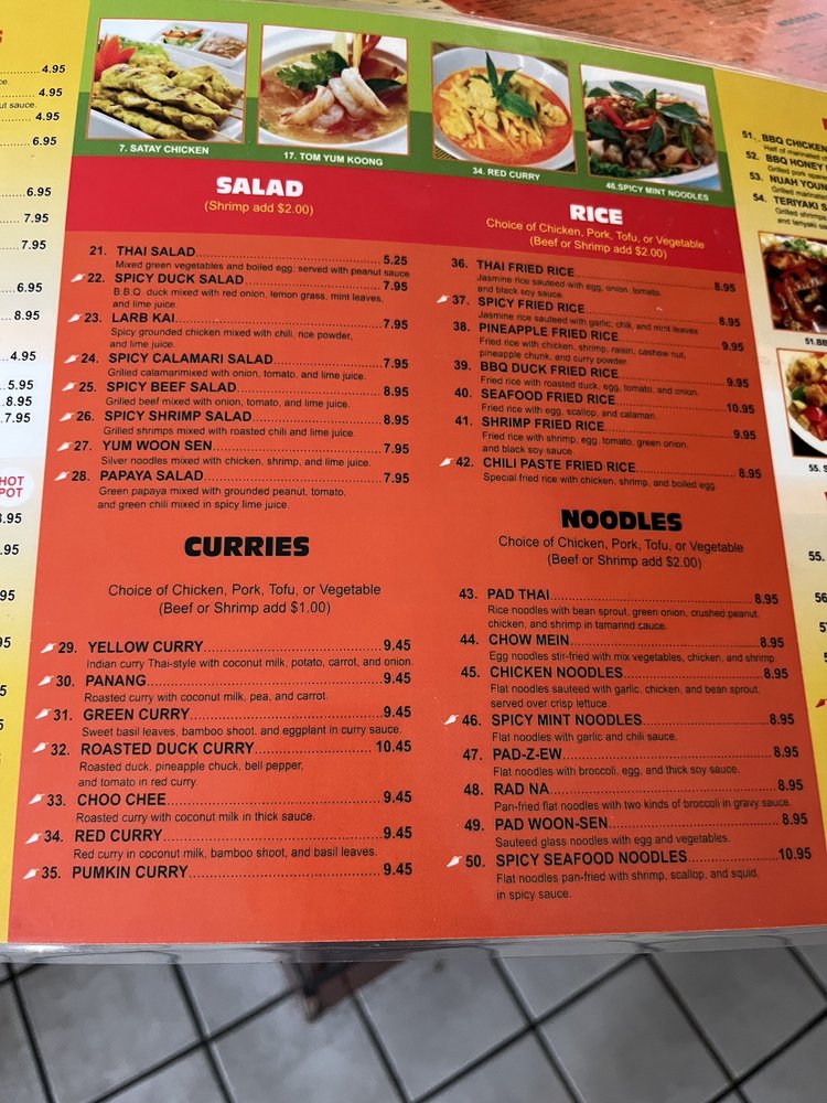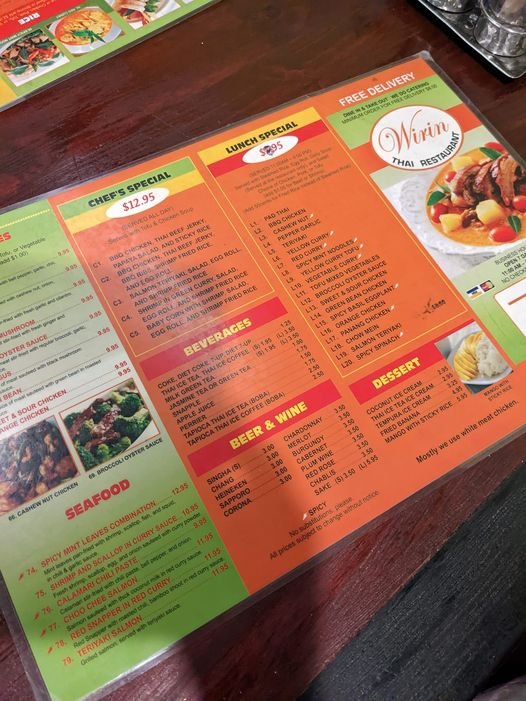 Wirin Thai Restaurant, located in Los Angeles, is a beloved spot for authentic Thai cuisine. With a diverse menu offering appetizers like crispy calamari, Thai beef jerky, and coconut shrimp, as well as BBQ options like BBQ chicken and teriyaki grilled shrimps, there is something for every palate. The beverage selection includes Thai iced tea, Thai iced coffee, and homemade lemonade. Customers rave about the flavorful dishes, reasonable prices, and exceptional service. The house special of shrimp and scallops in yellow curry sauce receives high praise for its generous portions and bold flavors. Whether you're dining in or opting for takeout, Wirin Thai Restaurant is sure to impress with its tasty dishes and welcoming atmosphere.